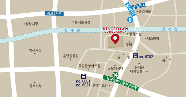 6-minute walk from Exit 14 of Dongdaemun History & Culture Park